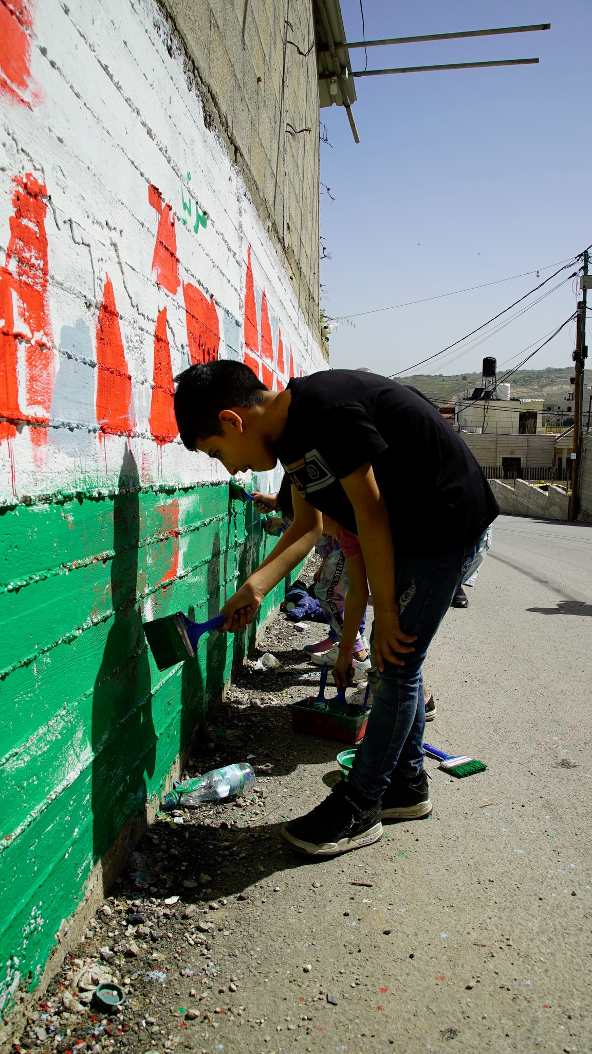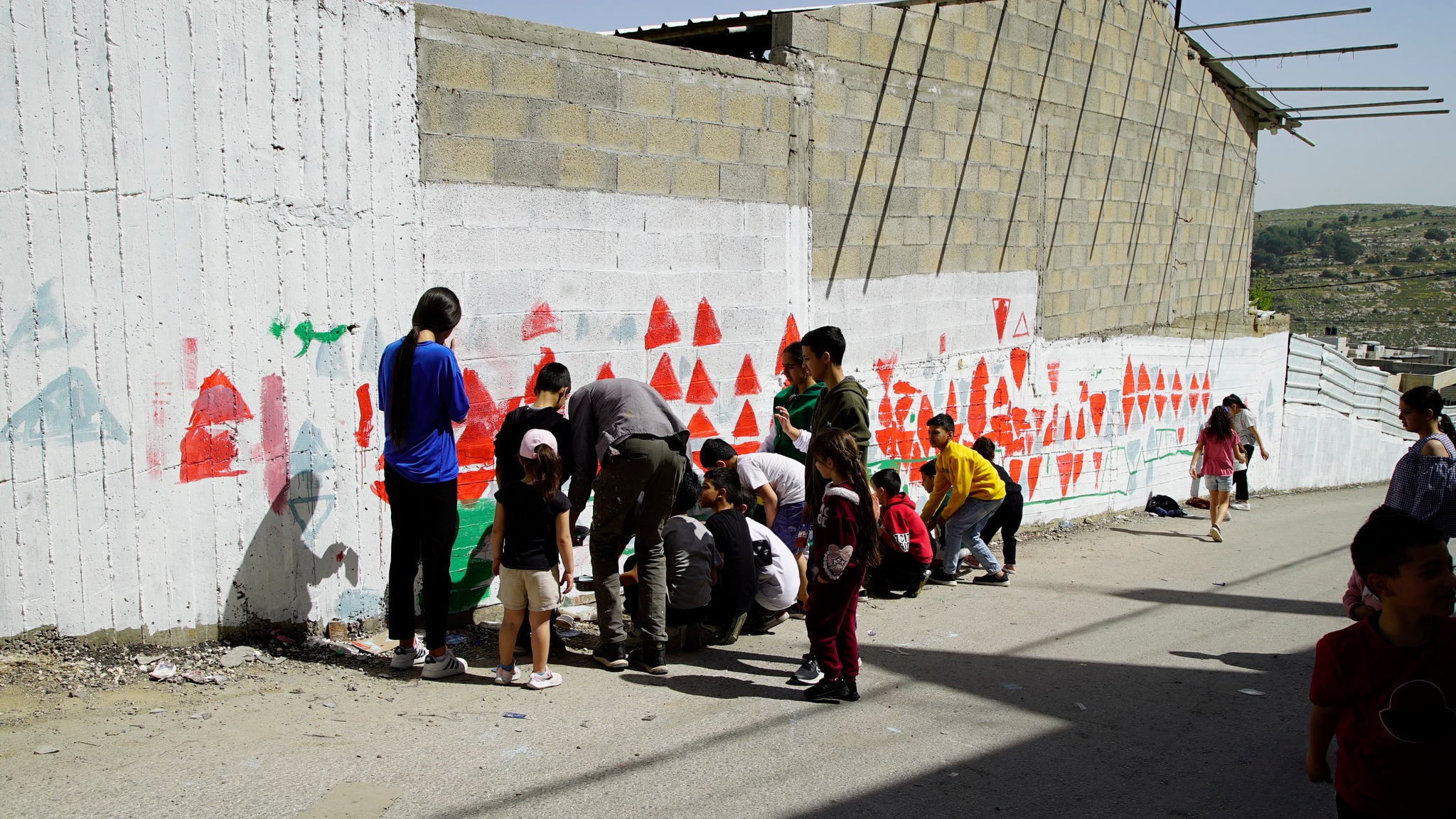 Shoruq organized a children's theater performance and painted a mural in the Dheisheh refugee camp