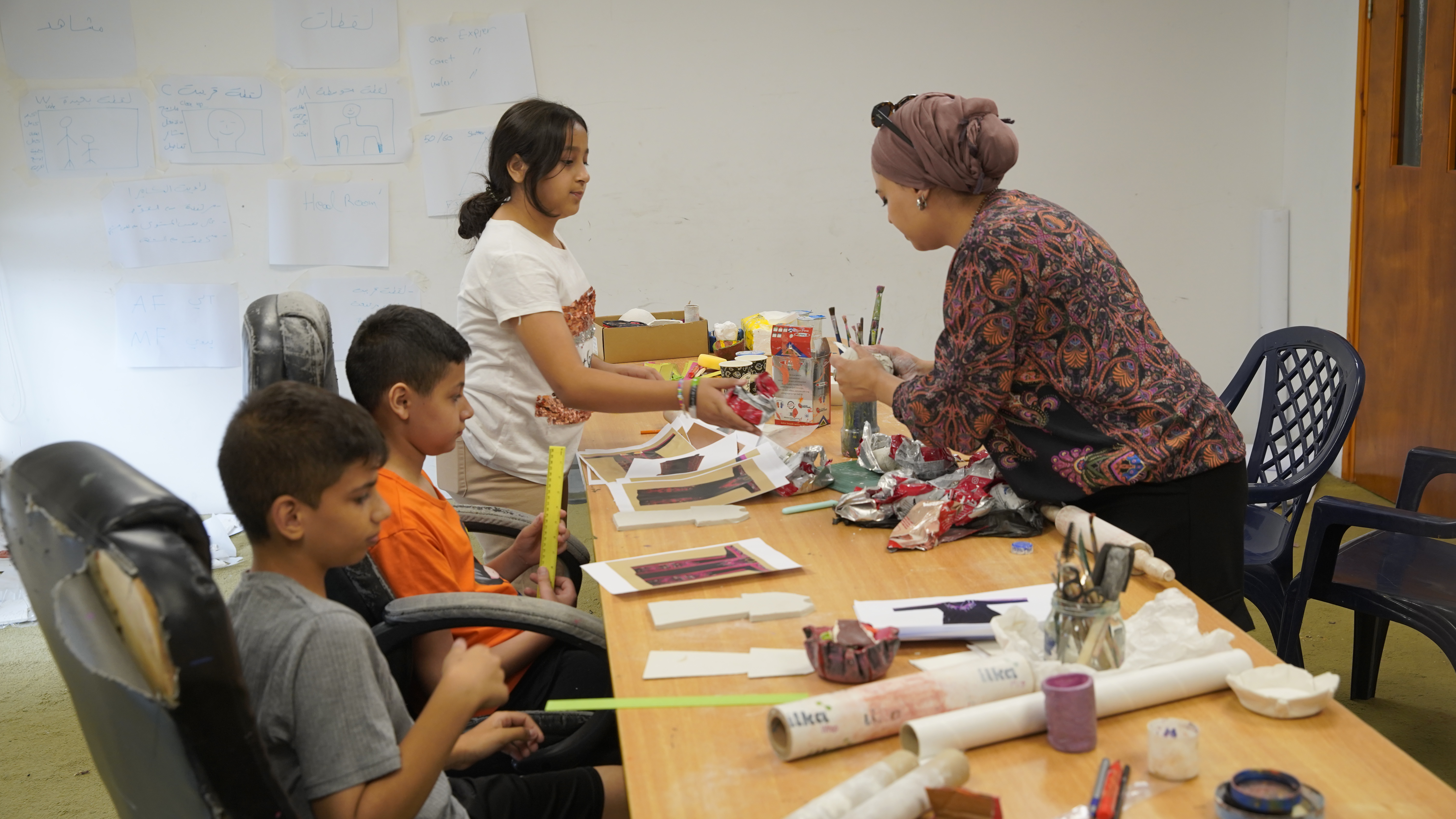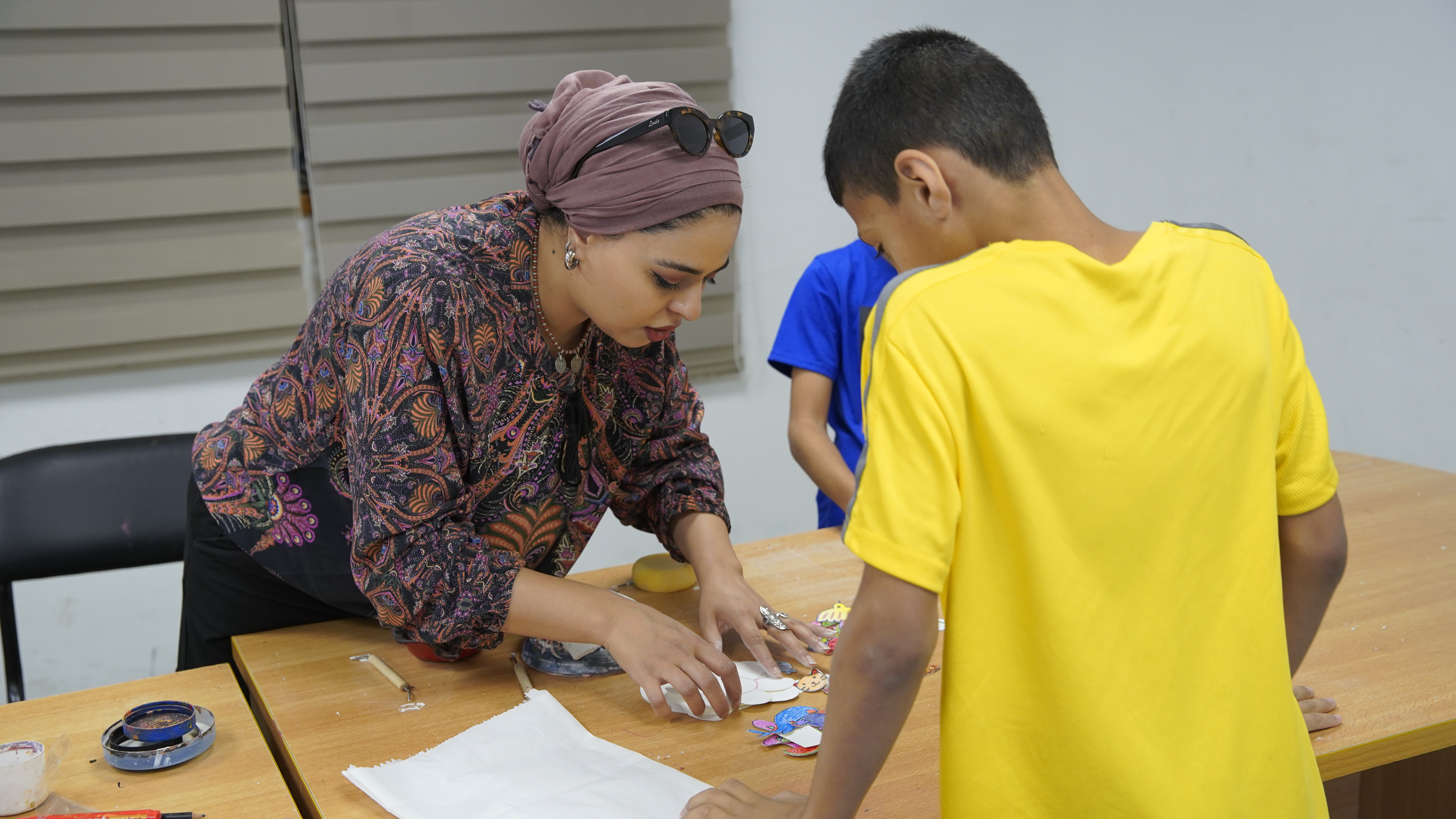 The training started with a professional artist in the field, Shatha Safi, the children are receiving hands-on training in crafting traditional Palestinian dresses. They are learning to apply intricate designs and techniques before bringing their creations to life with color.